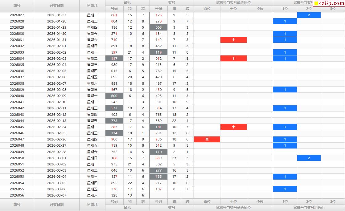 首页 > 福彩3D预测 > 26年056期福彩3D试机号走势图表分析