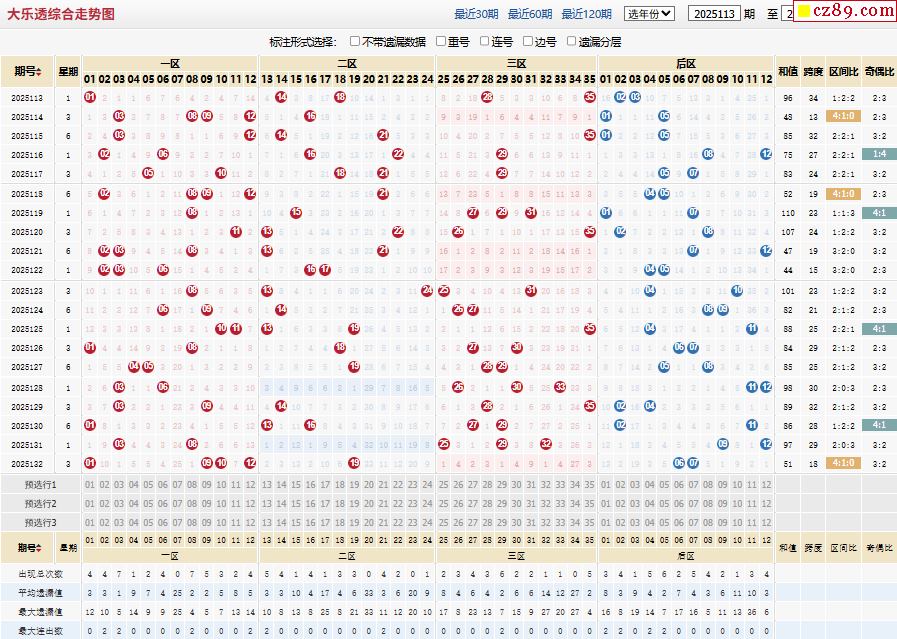 首页 > 大乐透预测 > 25年133期体彩大乐透近期走势图分析